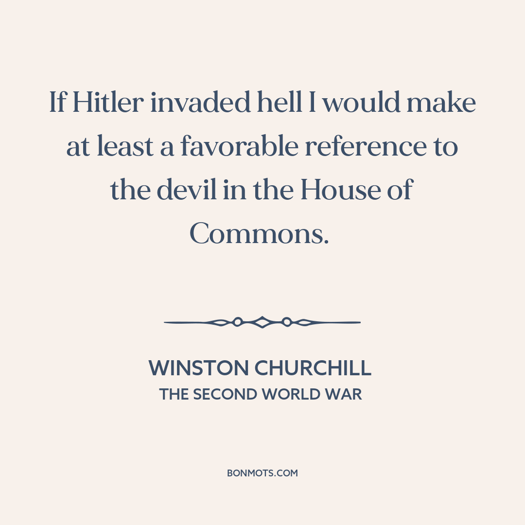If Hitler invaded hell I would make at least a favorable reference to the devil in the House of Commons.