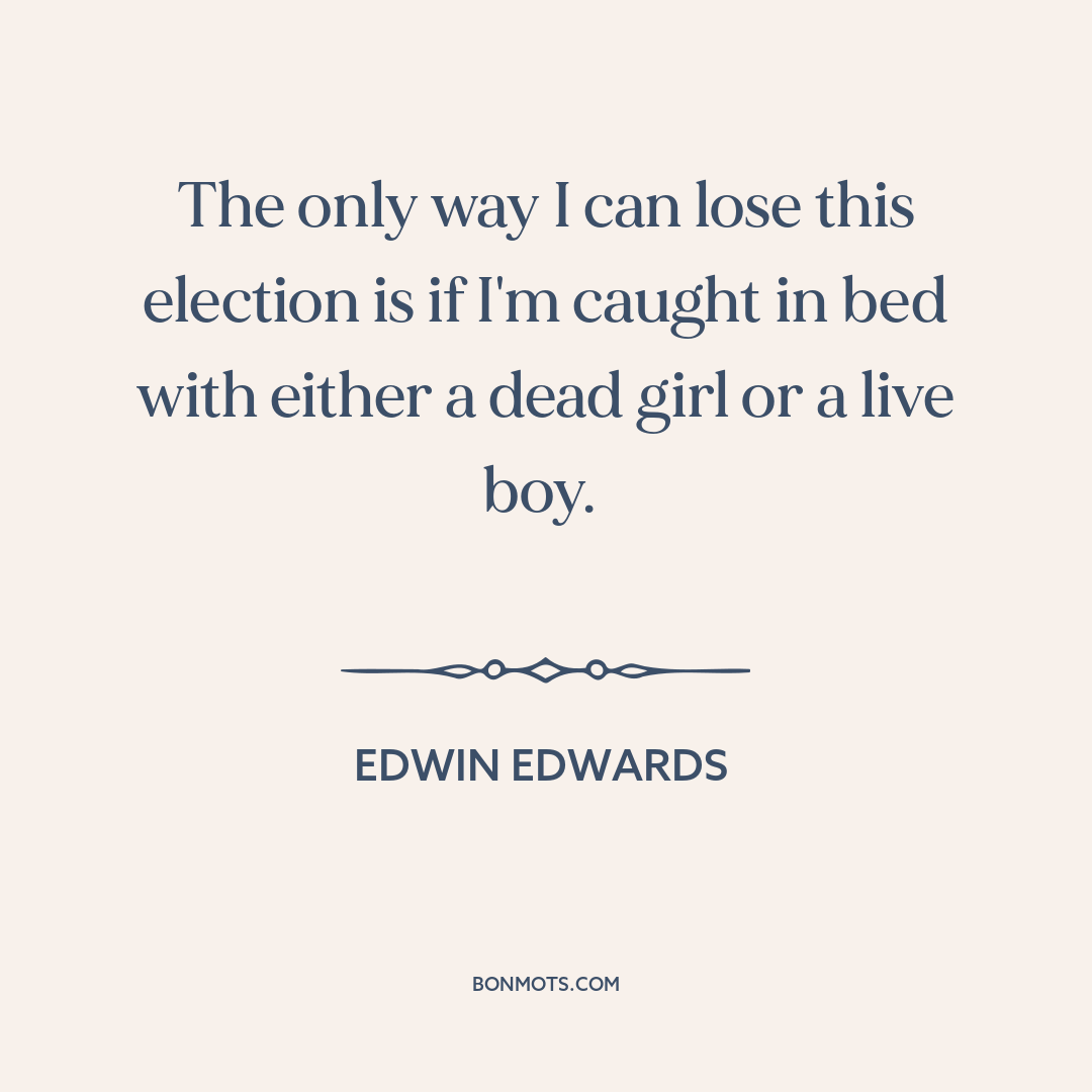 The only way I can lose this election is if I'm caught in bed with either a dead girl or a live boy.
