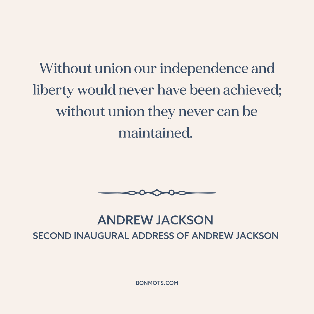 Without union our independence and liberty would never have been achieved; without union they never can be maintained.