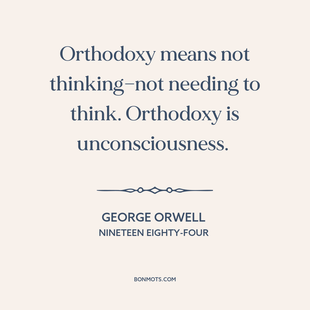 Orthodoxy means not thinking—not needing to think. Orthodoxy is unconsciousness.