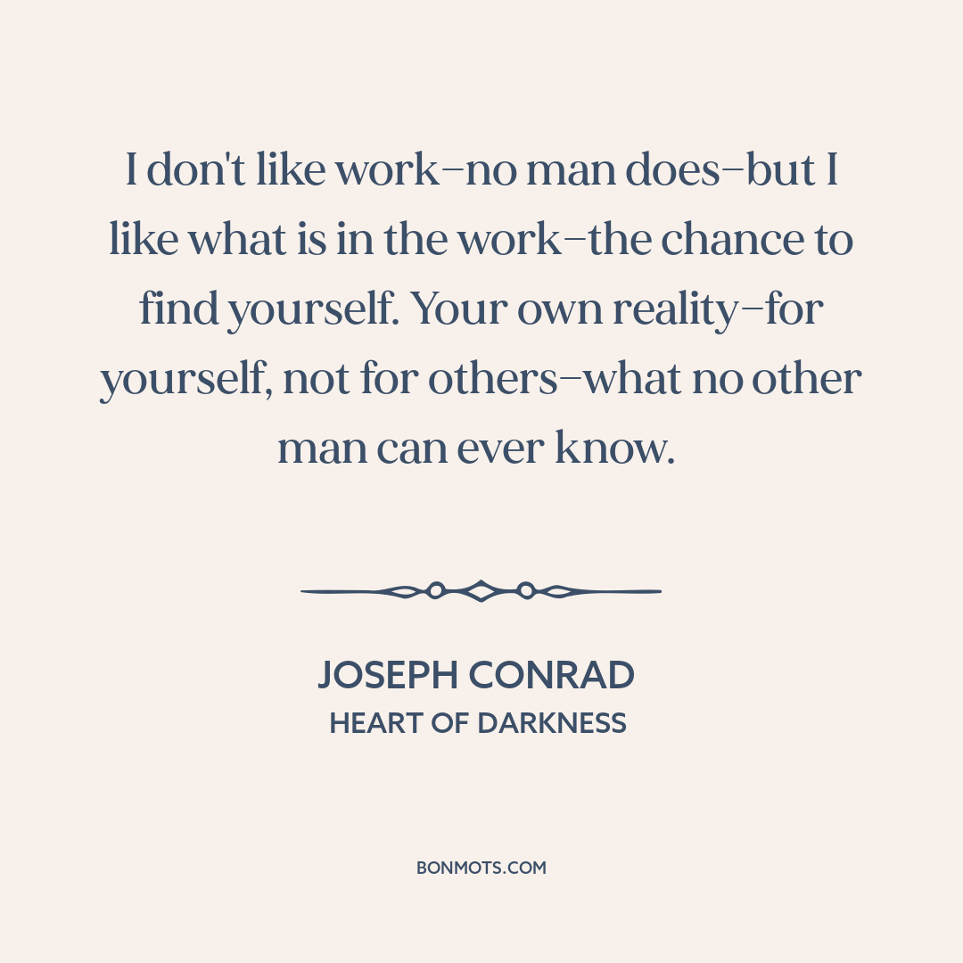 I don't like work—no man does—but I like what is in the work—the chance to find yourself. Your own reality—for yourself, not for others—what no other man can ever know.