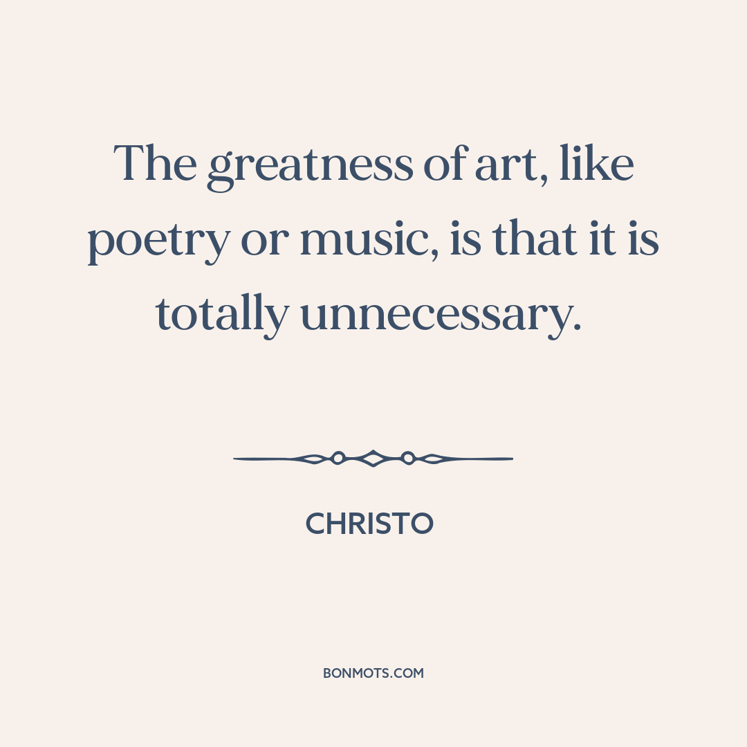 The greatness of art, like poetry or music, is that it is totally unnecessary.
