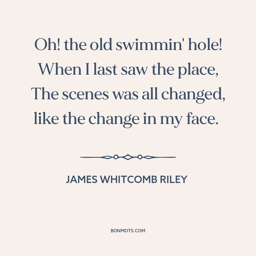 Riley, James Whitcomb. "The Old Swimmin' Hole." Little Orphant Annie and Other Poems. Dover Publications, 2011, st. 5.