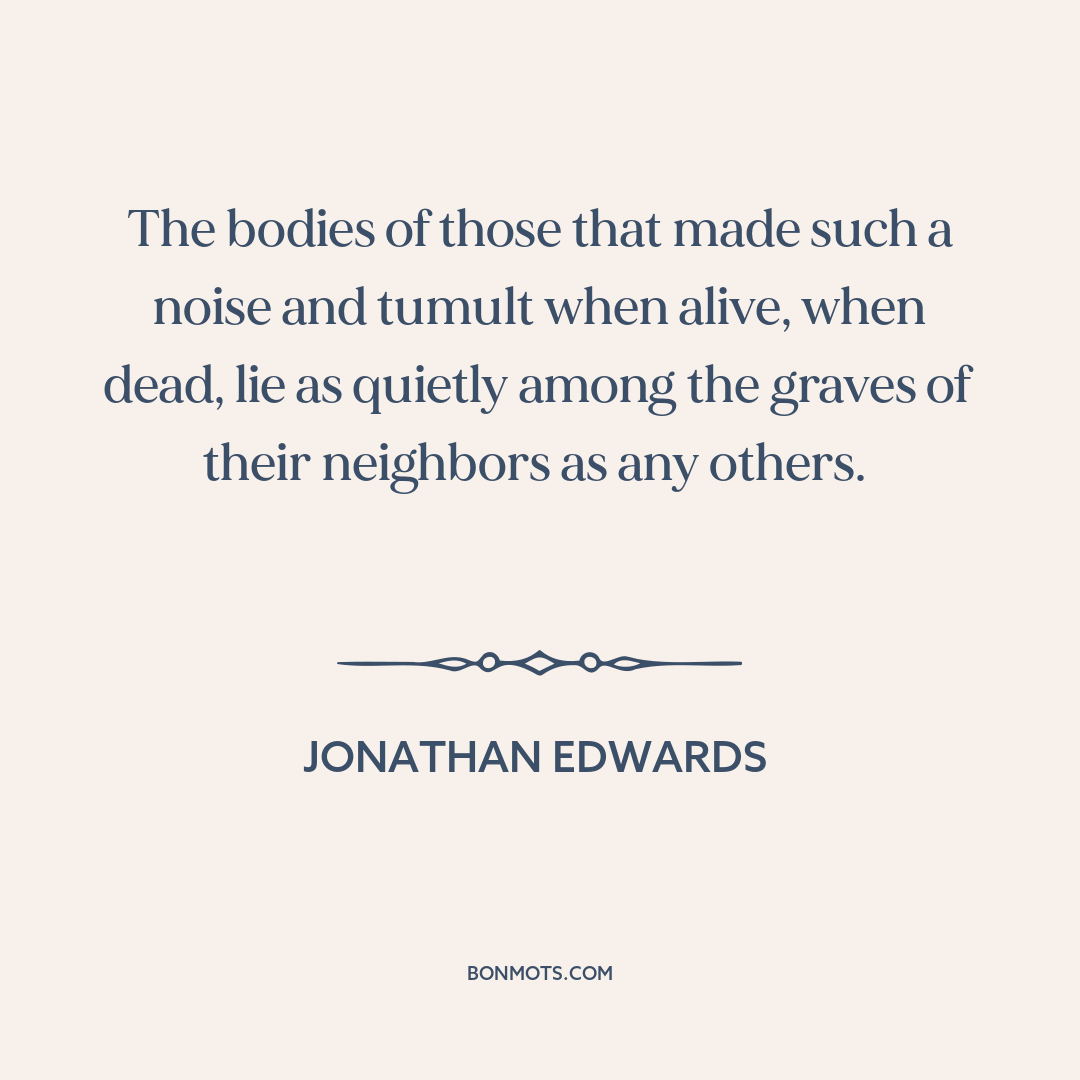 The bodies of those that made such a noise and tumult when alive, when dead, lie as quietly among the graves of their neighbors as any others.