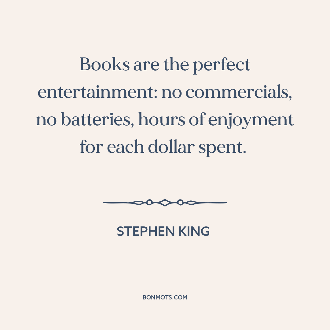 Books are the perfect entertainment: no commercials, no batteries, hours of enjoyment for each dollar spent.