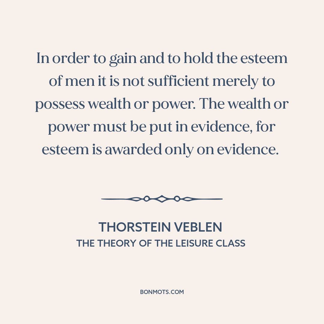 In order to gain and to hold the esteem of men it is not sufficient merely to possess wealth or power. The wealth or power must be put in evidence, for esteem is awarded only on evidence.