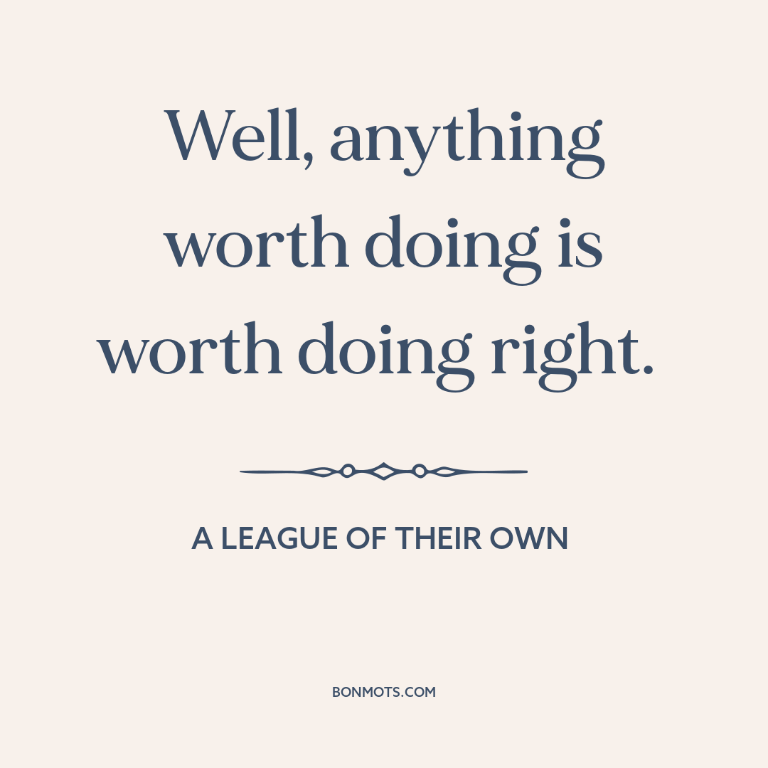 Well, anything worth doing is worth doing right.