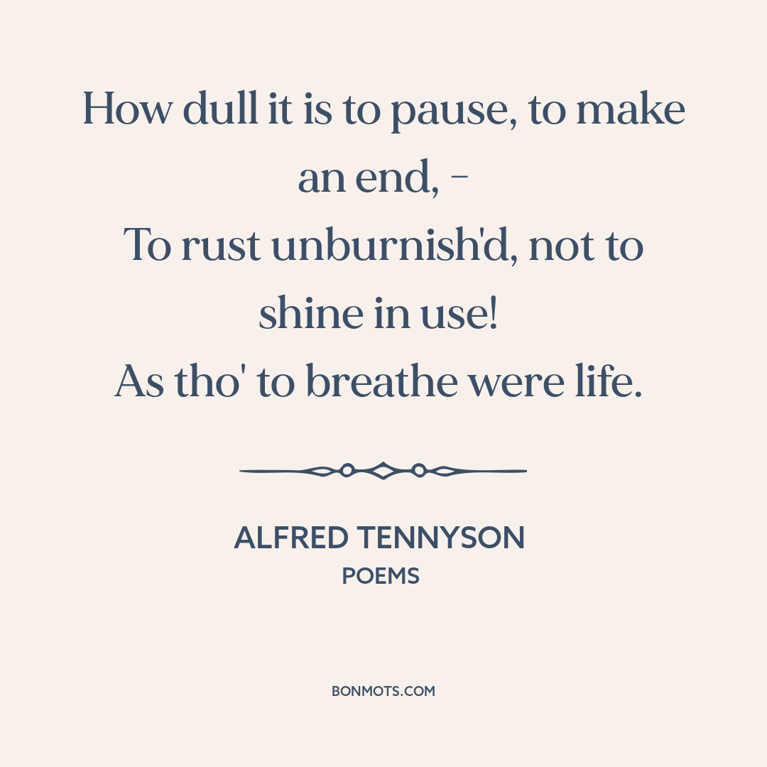 How dull it is to pause, to make an end, -
