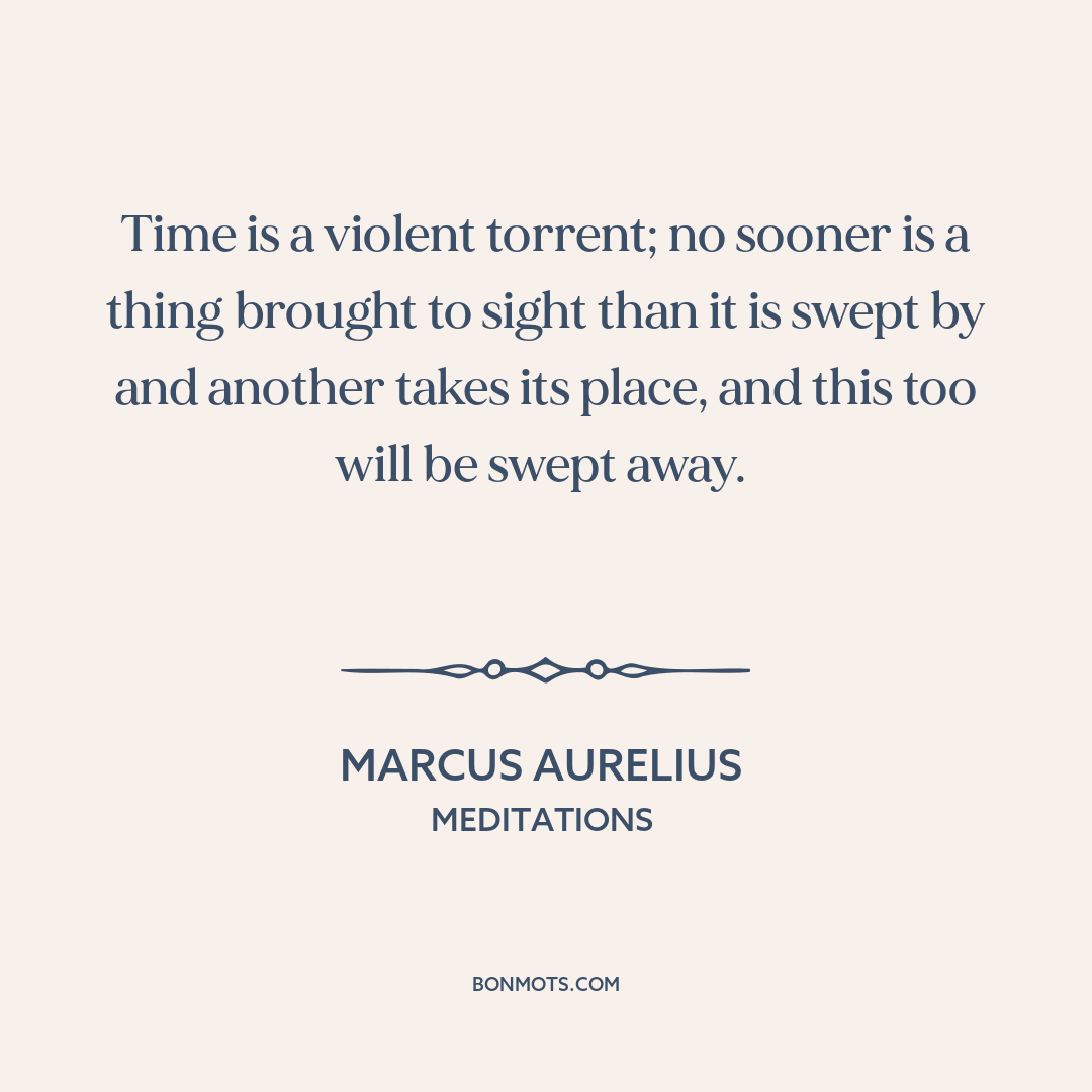 Time is a violent torrent; no sooner is a thing brought to sight than it is swept by and another takes its place, and this too will be swept away.