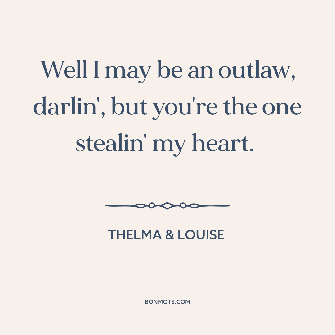 Well I may be an outlaw, darlin', but you're the one stealin' my heart.