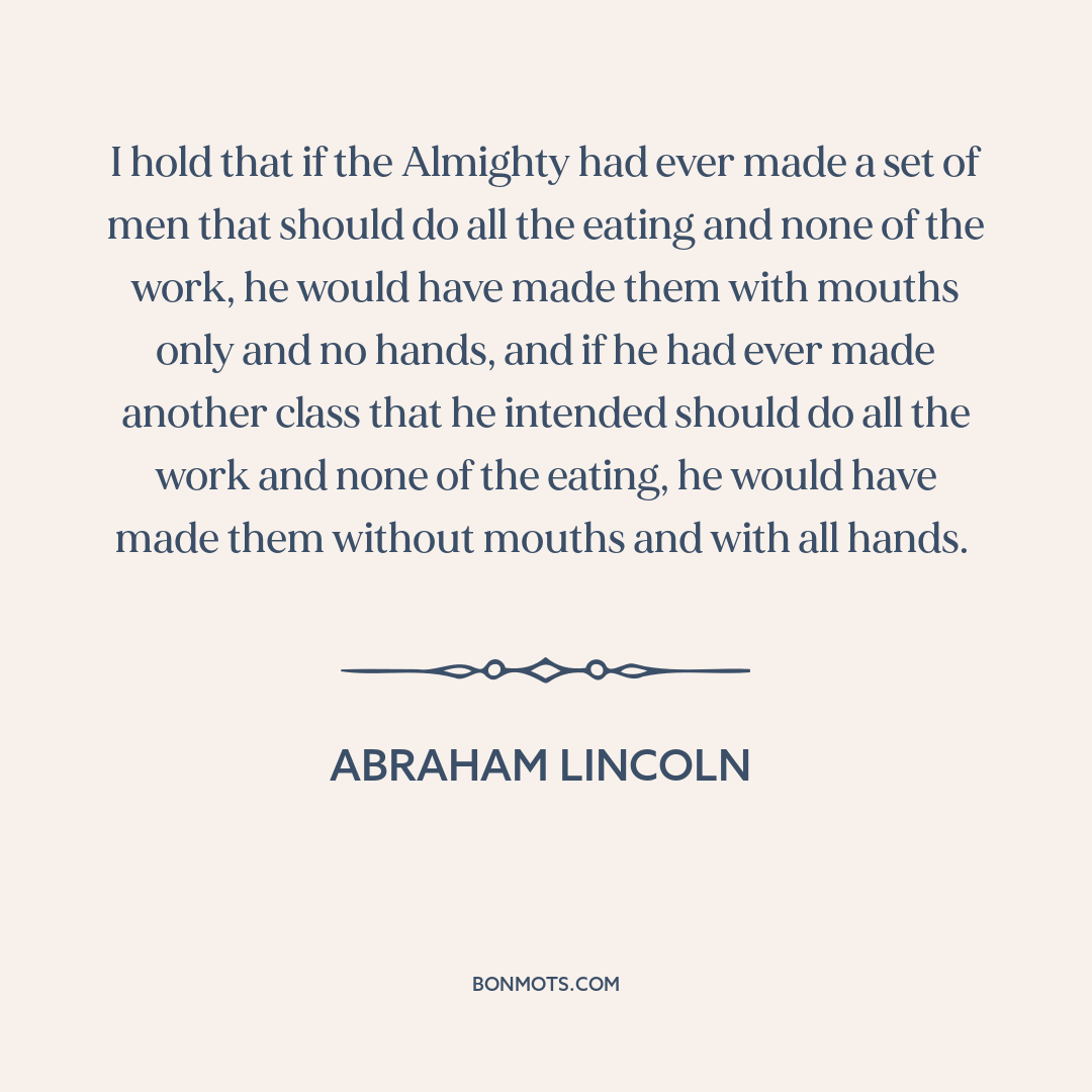 I hold that if the Almighty had ever made a set of men that should do all the eating and none of the work, he would have made them with mouths only and no hands, and if he had ever made another class that he intended should do all the work and none of the eating, he would have made them without mouths and with all hands.