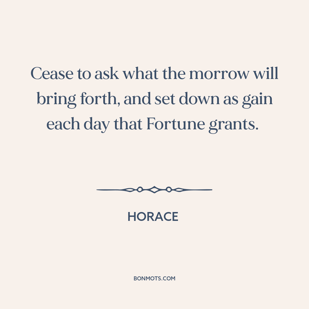 Cease to ask what the morrow will bring forth, and set down as gain each day that Fortune grants.
