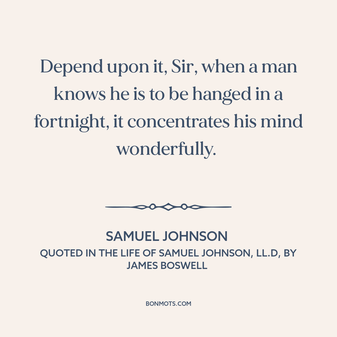 Depend upon it, Sir, when a man knows he is to be hanged in a fortnight, it concentrates his mind wonderfully.