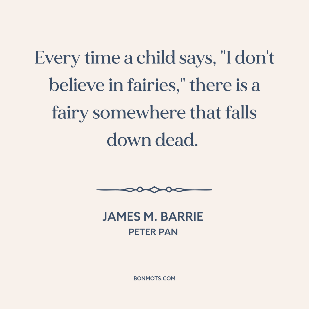 Every time a child says, "I don't believe in fairies," there is a fairy somewhere that falls down dead.