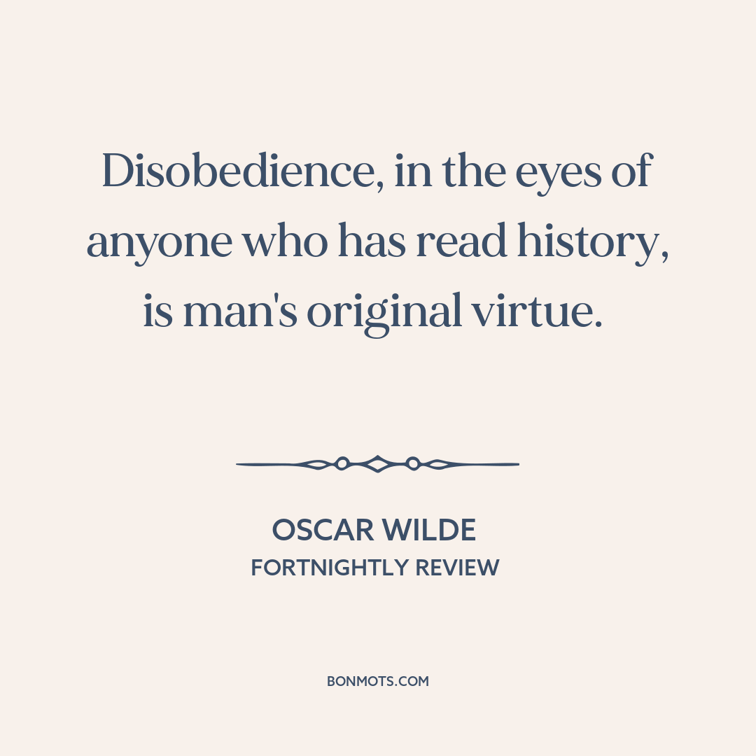 Disobedience, in the eyes of anyone who has read history, is man's original virtue.