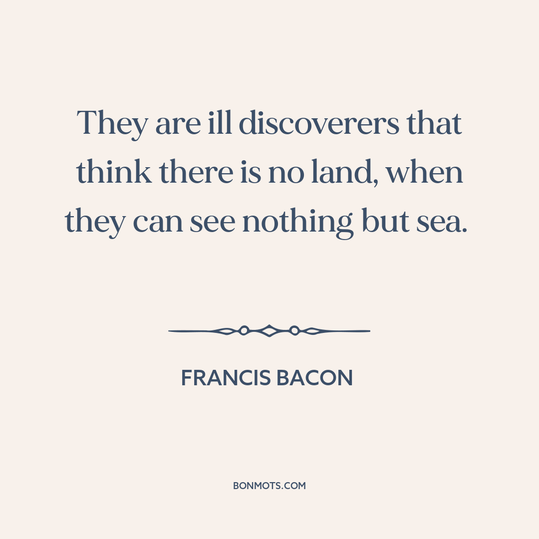 They are ill discoverers that think there is no land, when they can see nothing but sea.