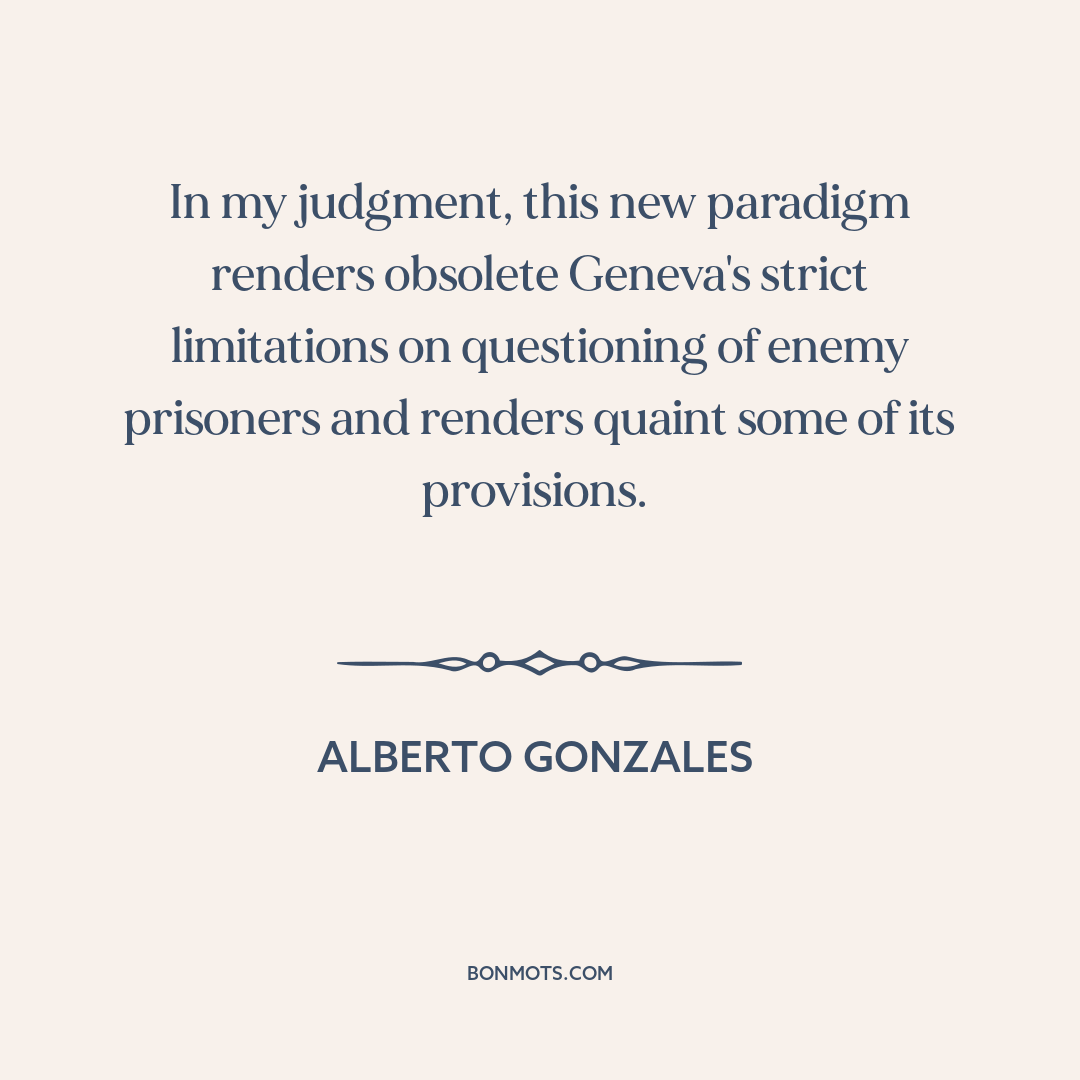 In my judgment, this new paradigm renders obsolete Geneva's strict limitations on questioning of enemy prisoners and renders quaint some of its provisions.