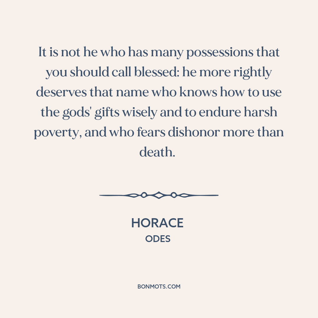 It is not he who has many possessions that you should call blessed: he more rightly deserves that name who knows how to use the gods' gifts wisely and to endure harsh poverty, and who fears dishonor more than death.