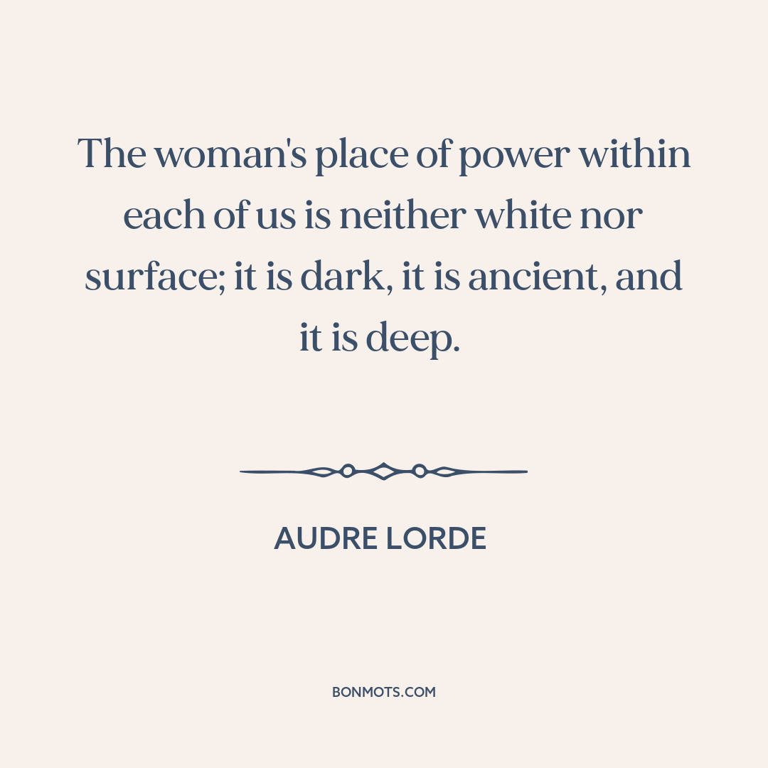The woman's place of power within each of us is neither white nor surface; it is dark, it is ancient, and it is deep.