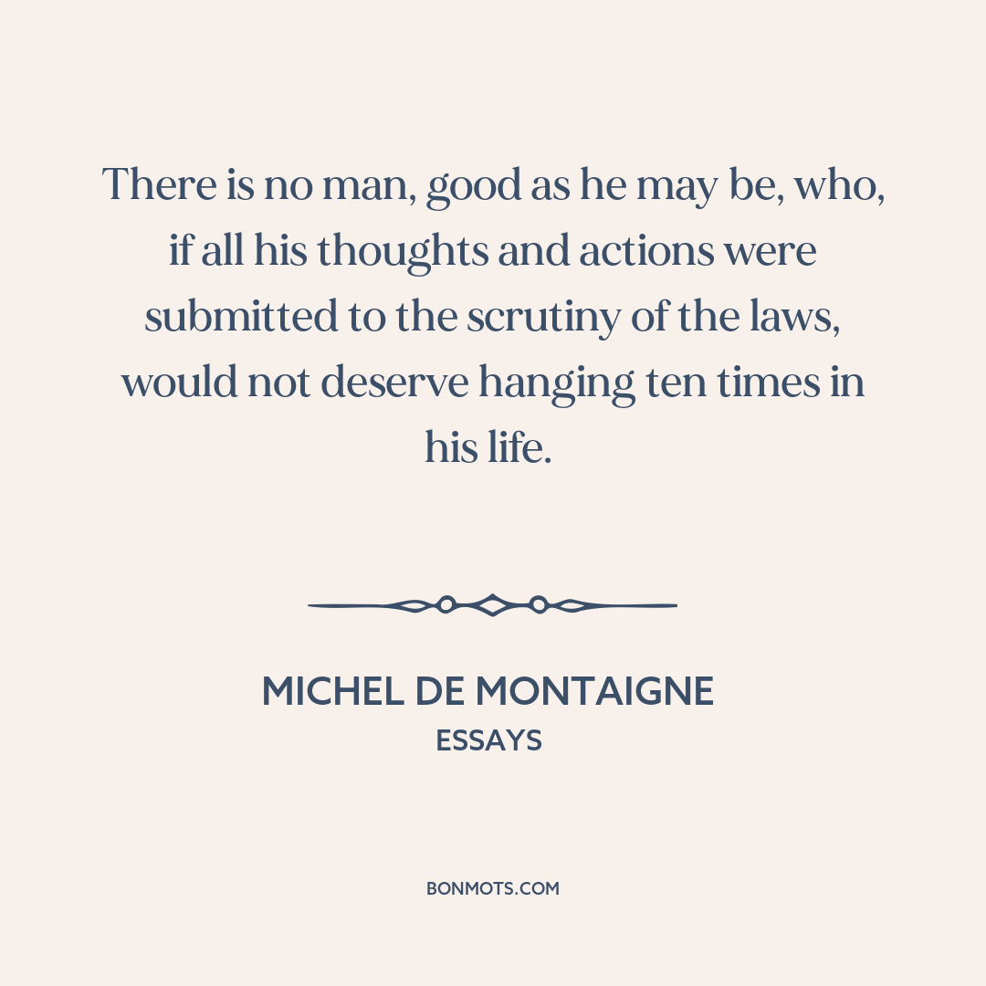 There is no man, good as he may be, who, if all his thoughts and actions were submitted to the scrutiny of the laws, would not deserve hanging ten times in his life.