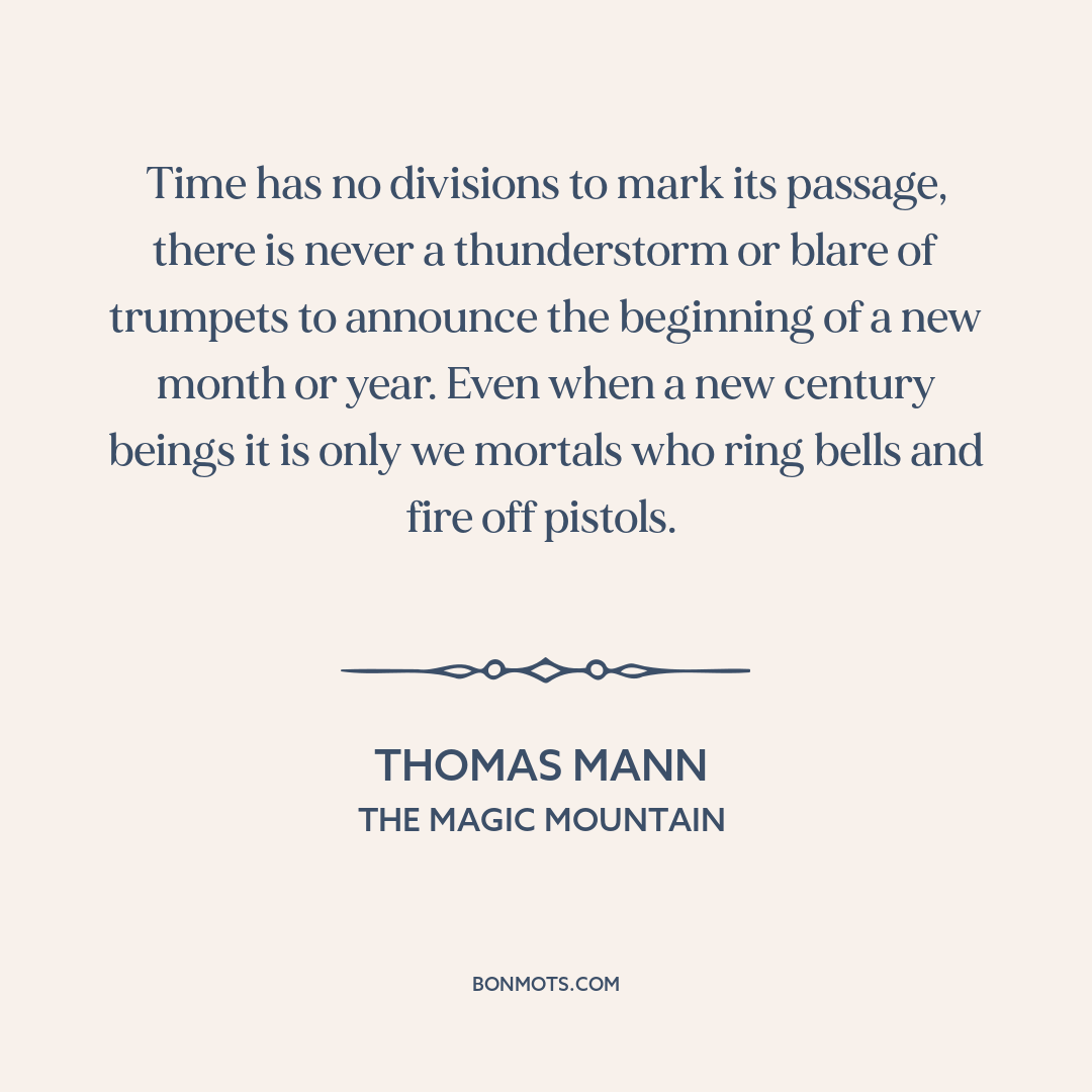 Time has no divisions to mark its passage, there is never a thunderstorm or blare of trumpets to announce the beginning of a new month or year. Even when a new century beings it is only we mortals who ring bells and fire off pistols.