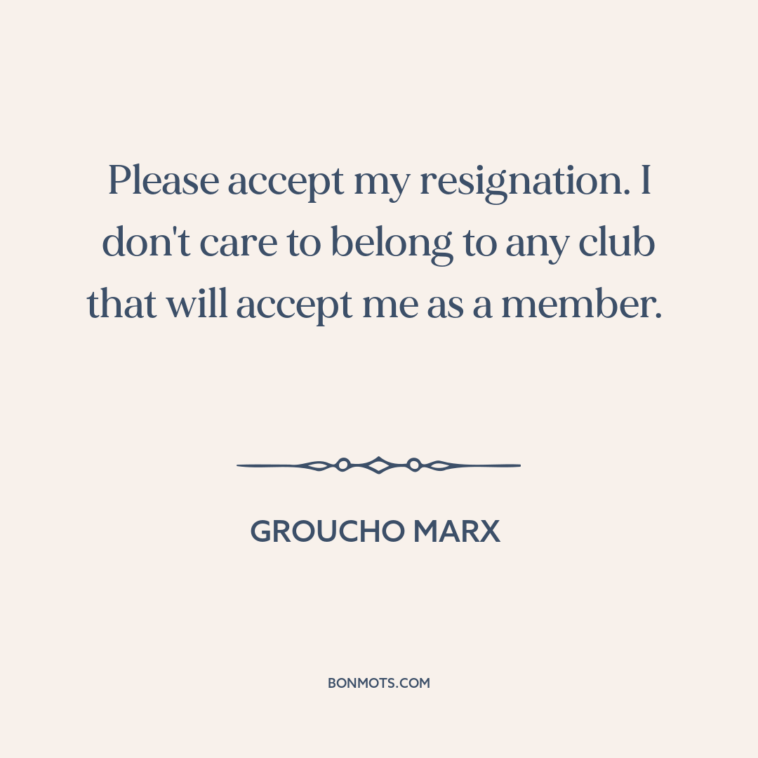 Please accept my resignation. I don't care to belong to any club that will accept me as a member.