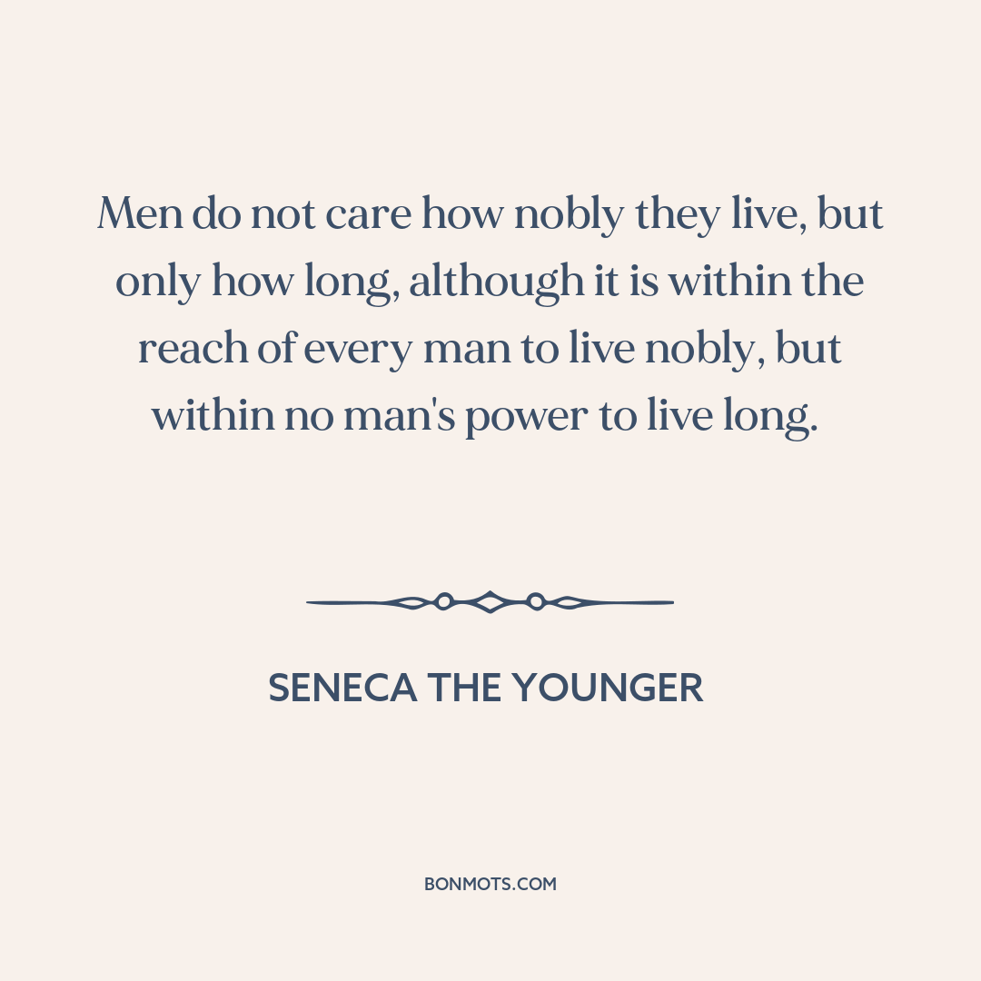 Men do not care how nobly they live, but only how long, although it is within the reach of every man to live nobly, but within no man's power to live long.