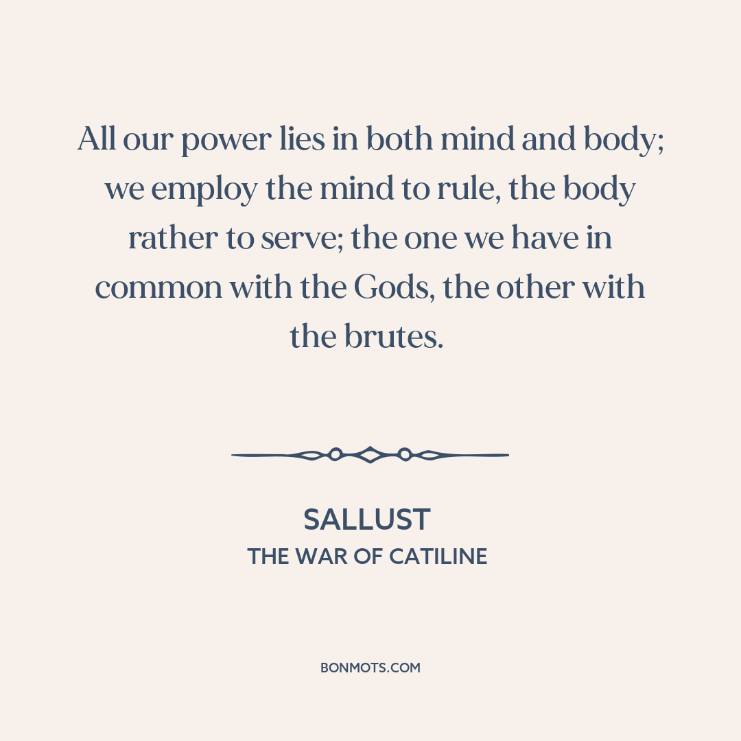 All our power lies in both mind and body; we employ the mind to rule, the body rather to serve; the one we have in common with the Gods, the other with the brutes.