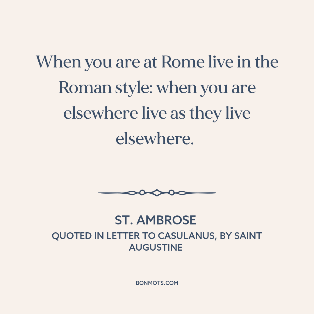 When you are at Rome live in the Roman style: when you are elsewhere live as they live elsewhere.