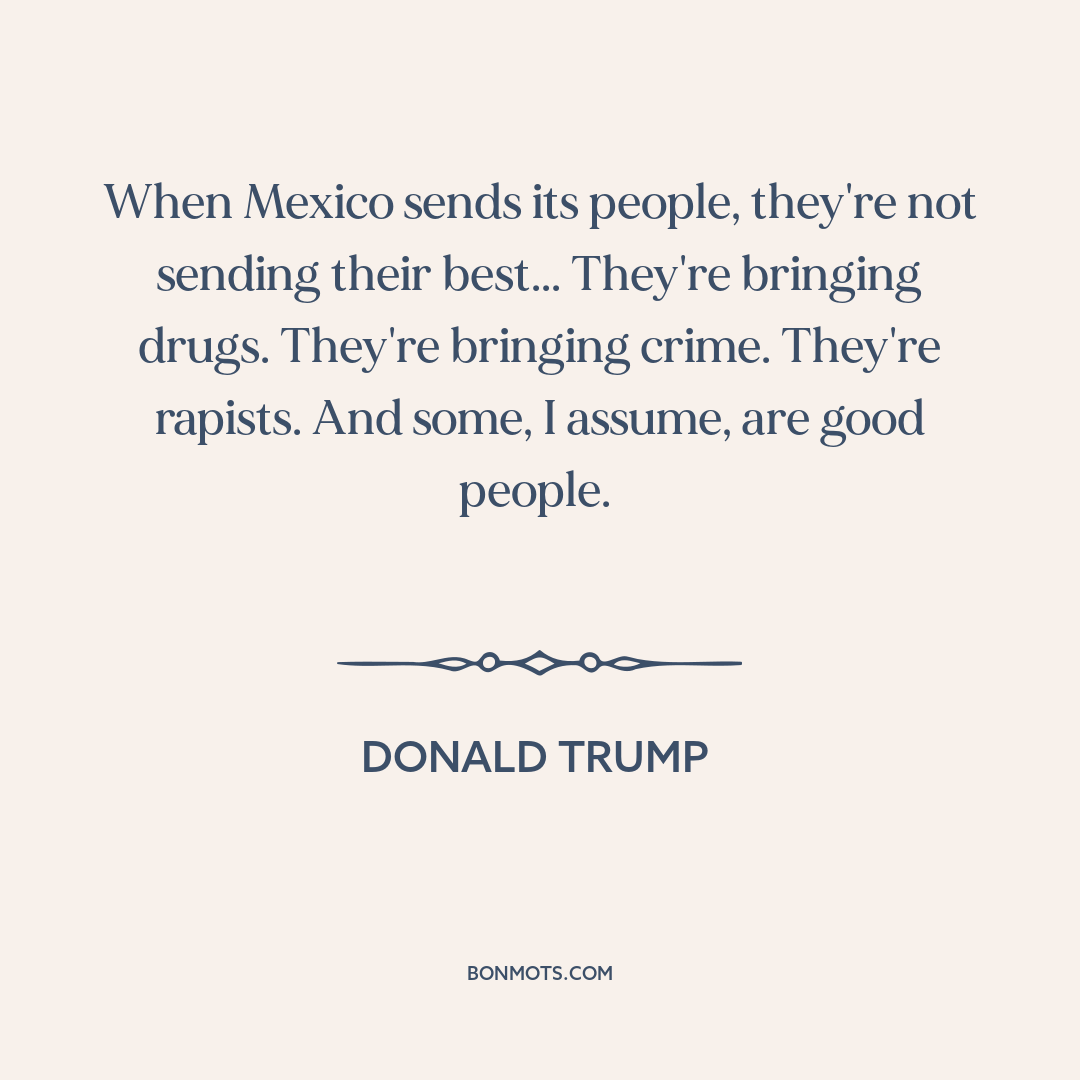 When Mexico sends its people, they're not sending their best... They're bringing drugs. They're bringing crime. They're rapists. And some, I assume, are good people.