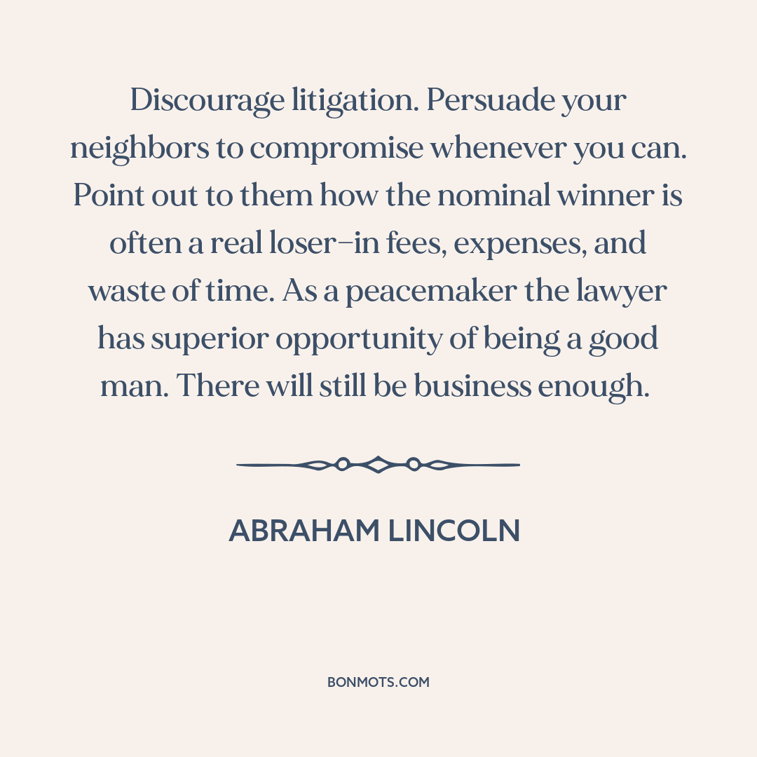 Discourage litigation. Persuade your neighbors to compromise whenever you can. Point out to them how the nominal winner is often a real loser—in fees, expenses, and waste of time. As a peacemaker the lawyer has superior opportunity of being a good man. There will still be business enough.