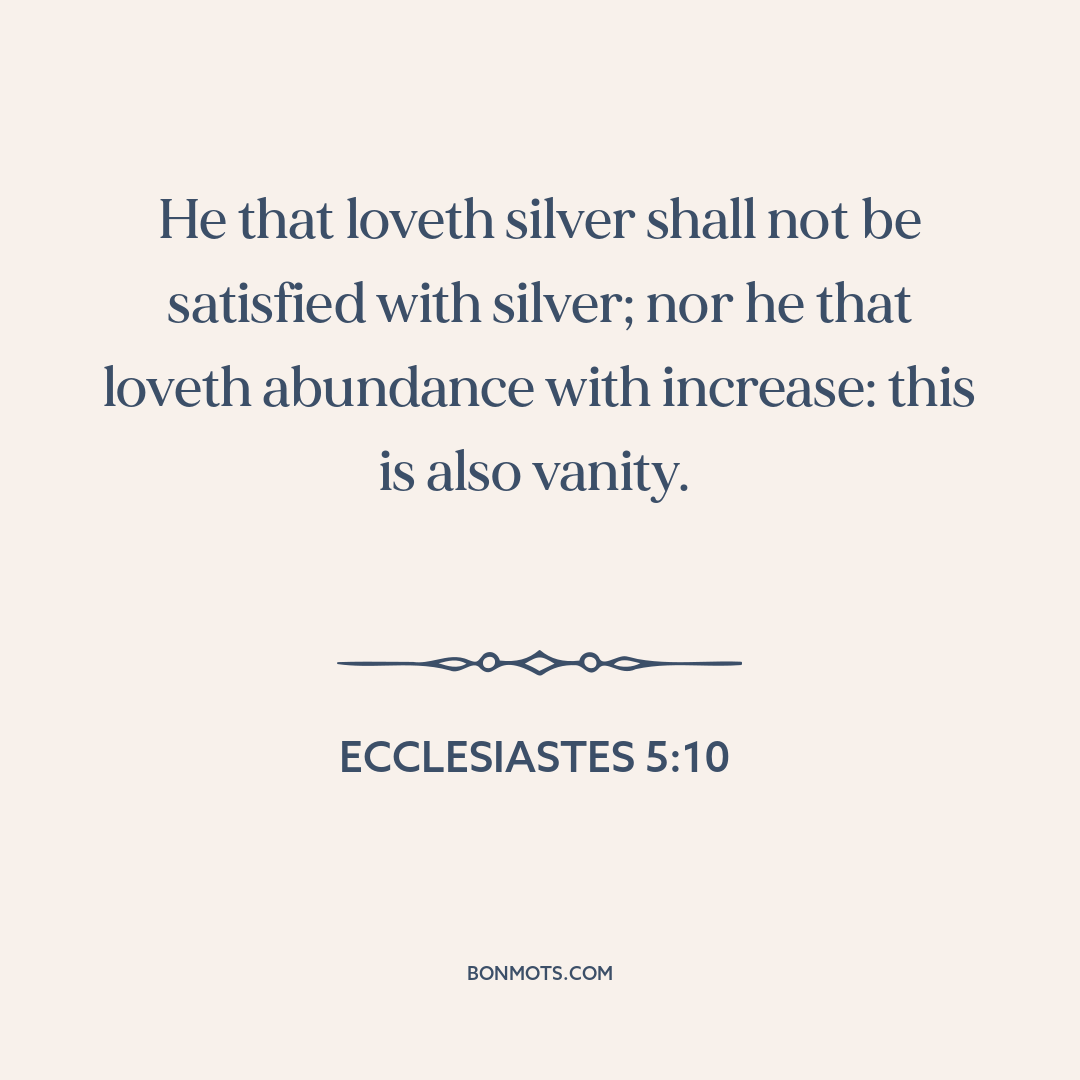 He that loveth silver shall not be satisfied with silver; nor he that loveth abundance with increase: this is also vanity.
