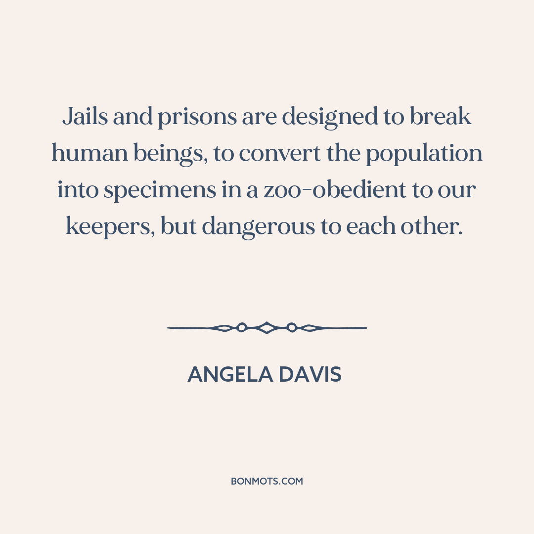 Jails and prisons are designed to break human beings, to convert the population into specimens in a zoo-obedient to our keepers, but dangerous to each other.