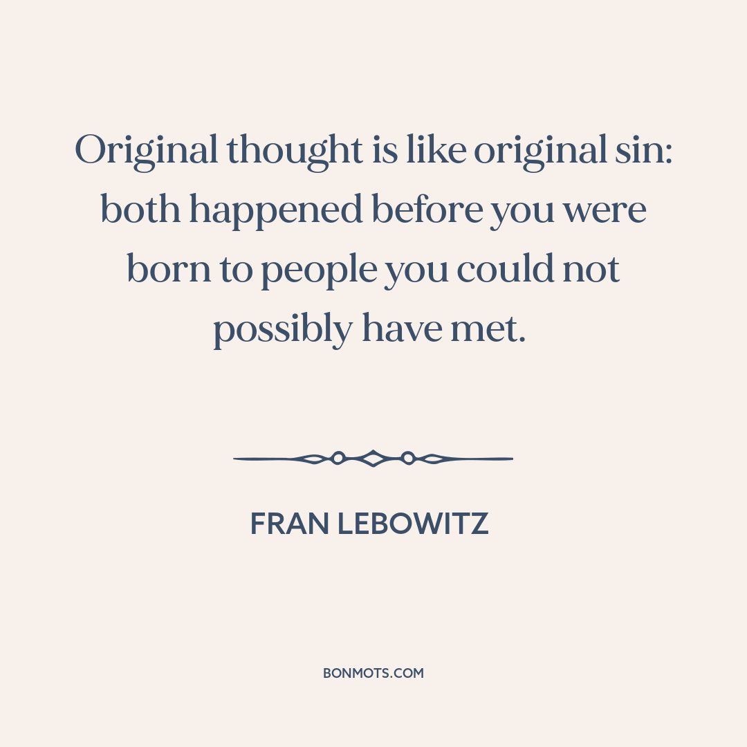 Original thought is like original sin: both happened before you were born to people you could not possibly have met.