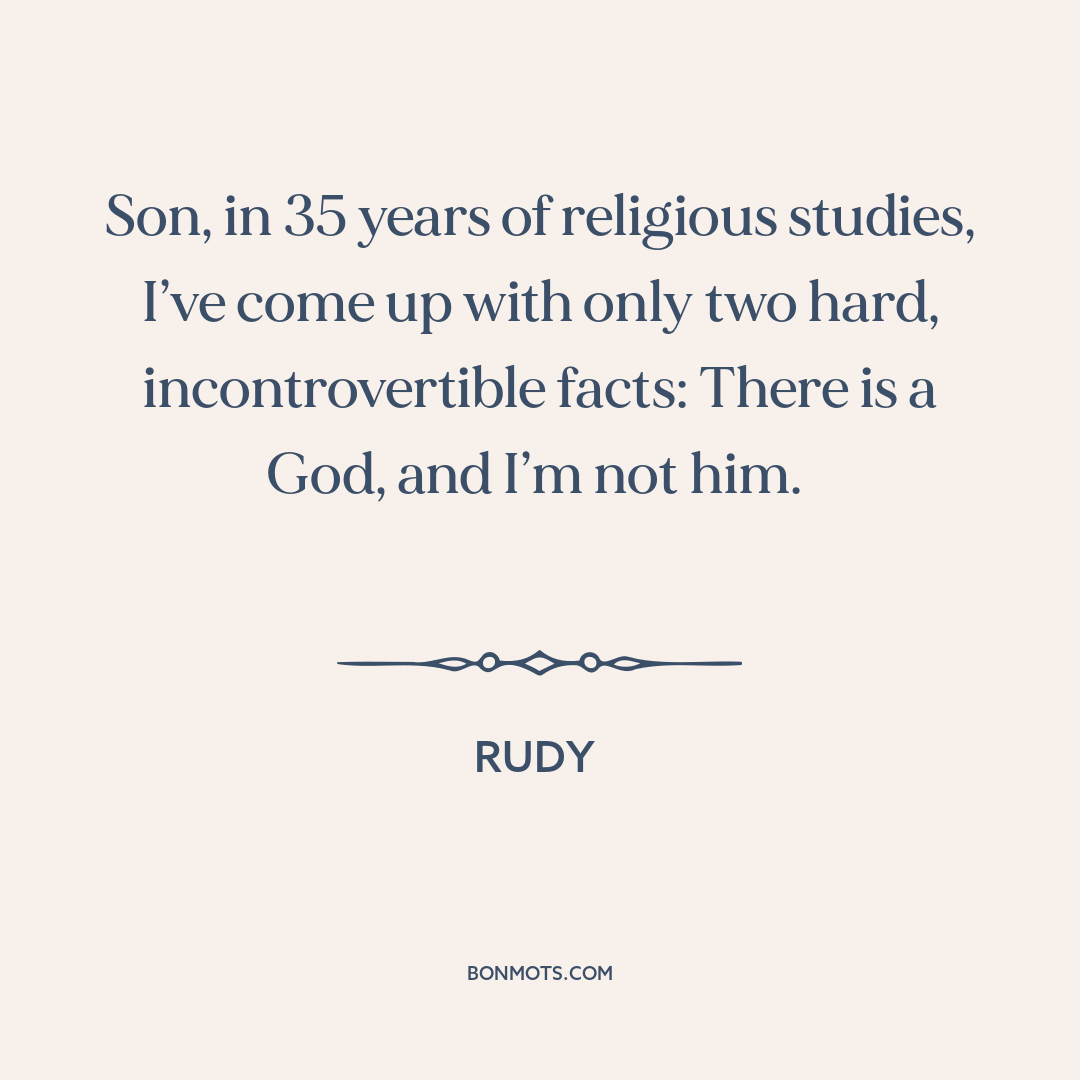Son, in 35 years of religious studies, I’ve come up with only two hard, incontrovertible facts: There is a God, and I’m not him.