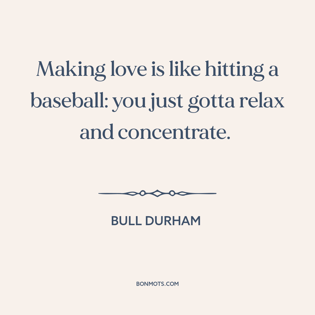 Making love is like hitting a baseball: you just gotta relax and concentrate.