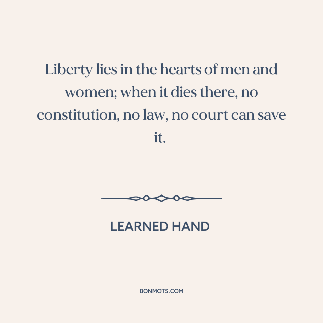 Liberty lies in the hearts of men and women; when it dies there, no constitution, no law, no court can save it.