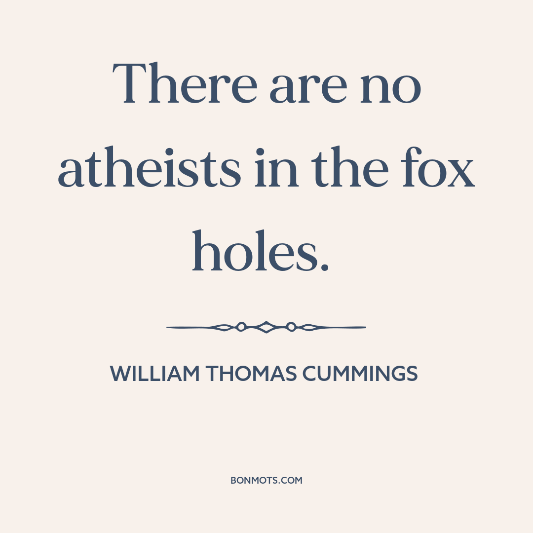 There are no atheists in the fox holes.