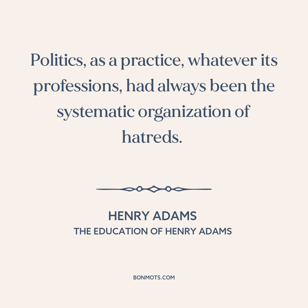 Politics, as a practice, whatever its professions, had always been the systematic organization of hatreds.