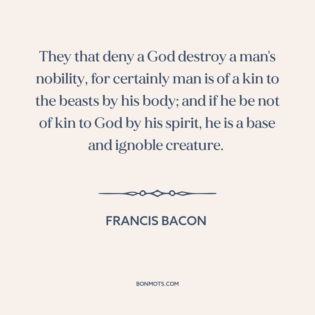They that deny a God destroy a man's nobility, for certainly man is of a kin to the beasts by his body; and if he be not of kin to God by his spirit, he is a base and ignoble creature.