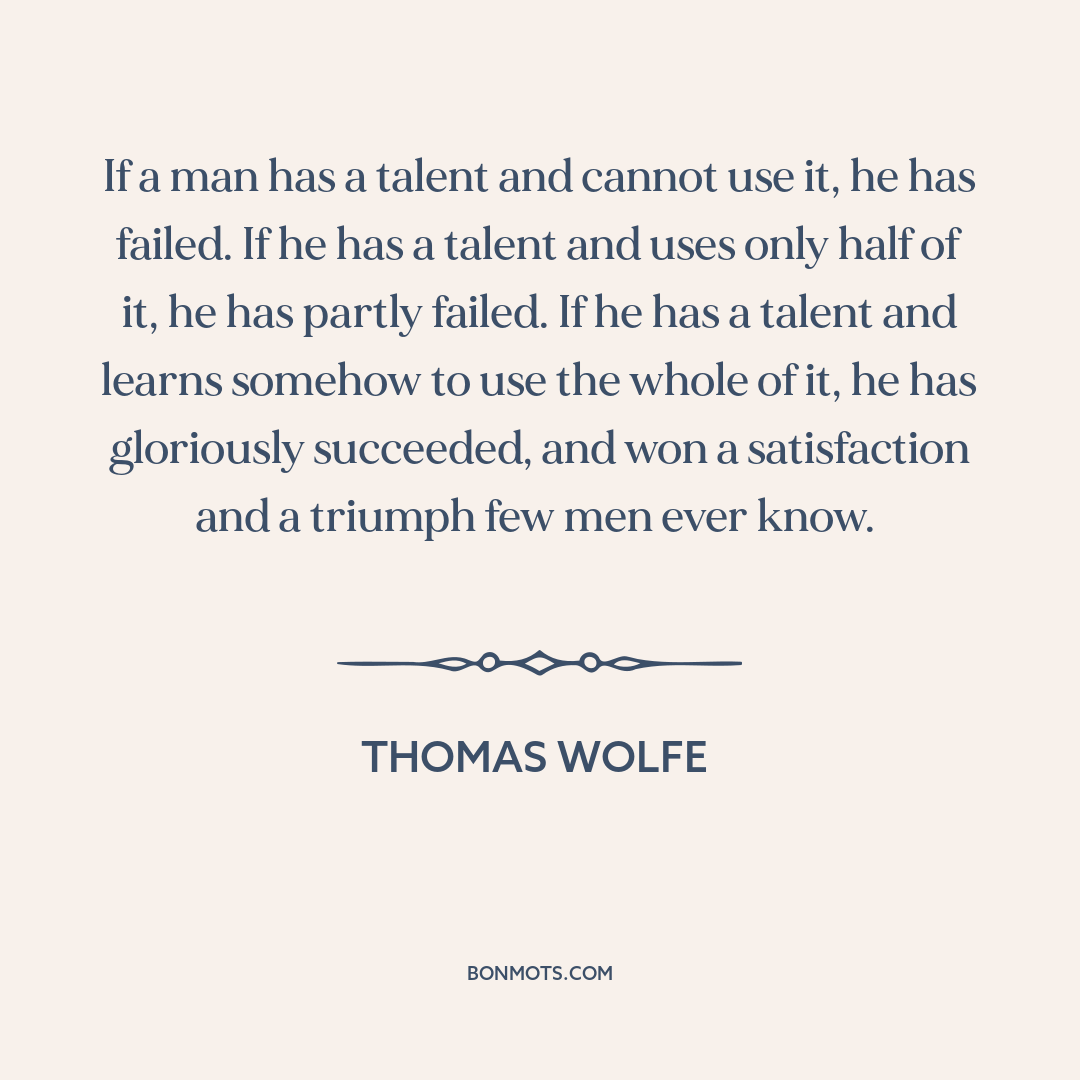 If a man has a talent and cannot use it, he has failed. If he has a talent and uses only half of it, he has partly failed. If he has a talent and learns somehow to use the whole of it, he has gloriously succeeded, and won a satisfaction and a triumph few men ever know.