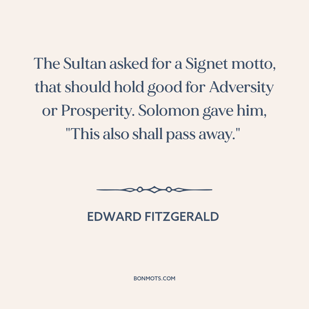 The Sultan asked for a Signet motto, that should hold good for Adversity or Prosperity. Solomon gave him, "This also shall pass away."
