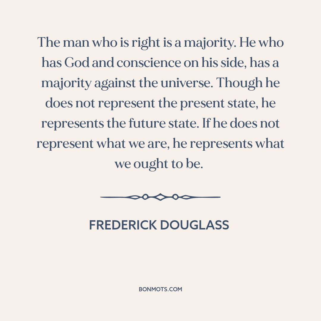 The man who is right is a majority. He who has God and conscience on his side, has a majority against the universe. Though he does not represent the present state, he represents the future state. If he does not represent what we are, he represents what we ought to be.