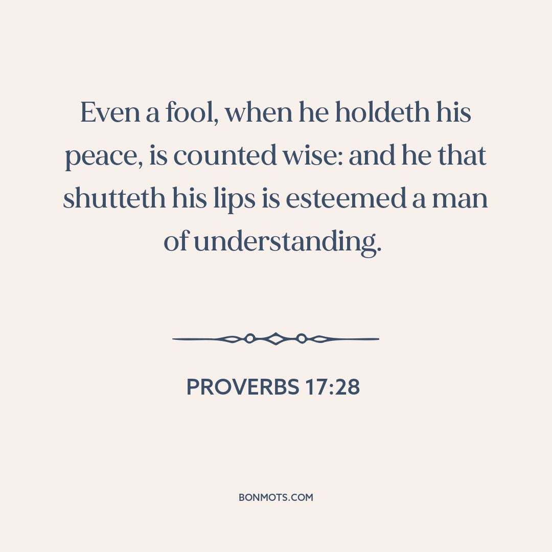 Even a fool, when he holdeth his peace, is counted wise: and he that shutteth his lips is esteemed a man of understanding.