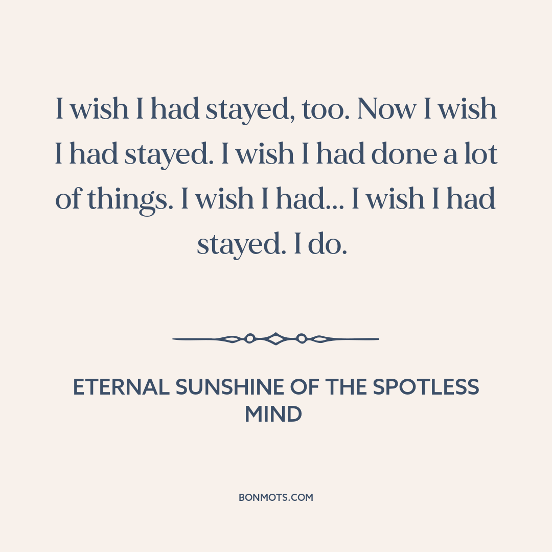 I wish I had stayed, too. Now I wish I had stayed. I wish I had done a lot of things. I wish I had... I wish I had stayed. I do.
