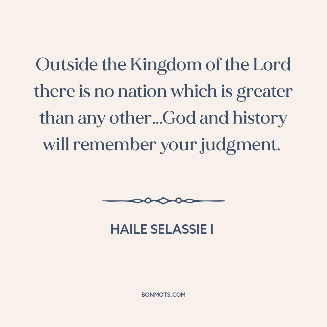 Outside the Kingdom of the Lord there is no nation which is greater than any other…God and history will remember your judgment.