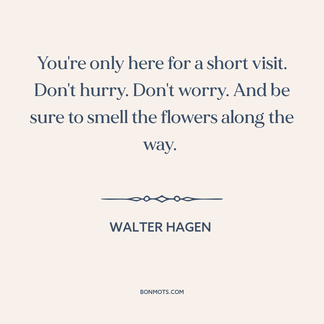 You're only here for a short visit. Don't hurry. Don't worry. And be sure to smell the flowers along the way.