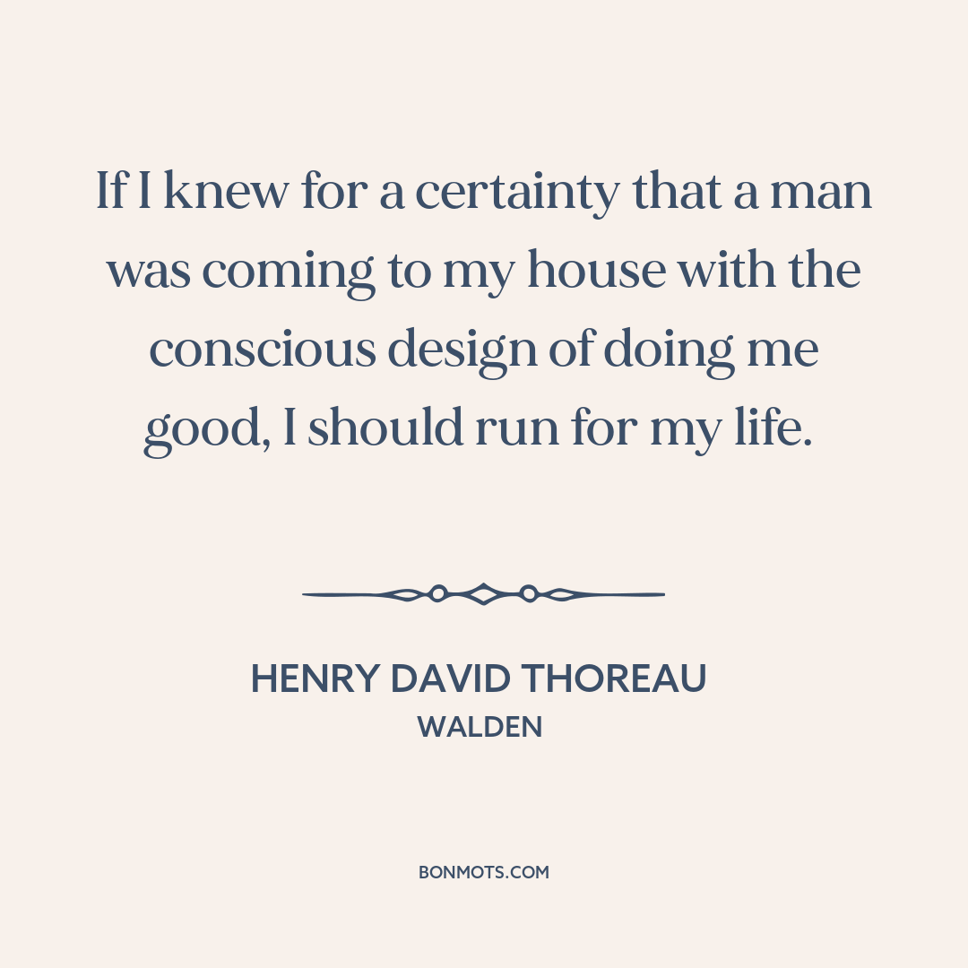 If I knew for a certainty that a man was coming to my house with the conscious design of doing me good, I should run for my life.