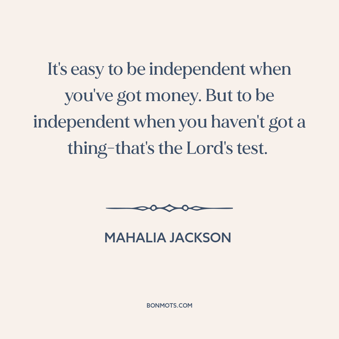 It's easy to be independent when you've got money. But to be independent when you haven't got a thing-that's the Lord's test.