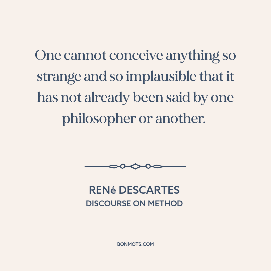 One cannot conceive anything so strange and so implausible that it has not already been said by one philosopher or another.